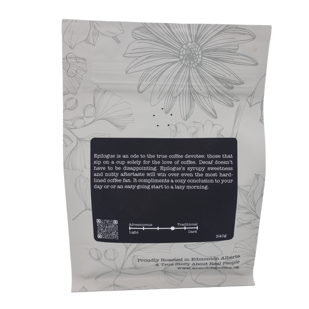 Epilogue is an ode to the true coffee devotee: those that sip on a cup solely for the love of coffee. Decaf doesn’t have to be disappointing. Epilogue’s syrupy sweetness and nutty aftertaste will win over even the most hardlined coffee fan. It compliments a cozy conclusion to your day or or an easy-going start to a lazy morning.